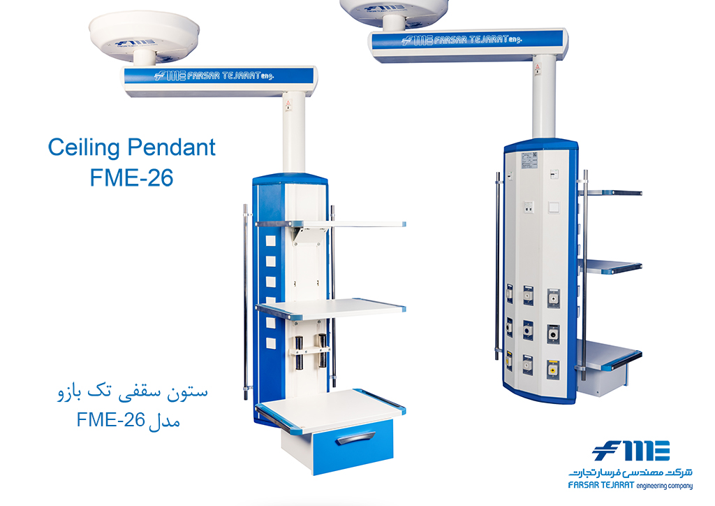 The ceiling pendant provides a space for connecting and installing the equipment that needs to be placed near the patient’s bed through the internet and phone; serum hangers and other accessories are considered some of this equipment. The FME ceiling pendant can be used within the special care units (such as ICU, CCU, NICU, PICU), Angiography, Dialysis, operating, and emergency rooms.