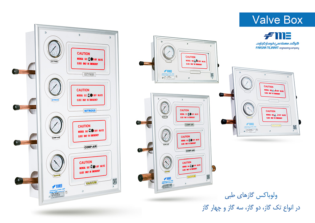 Each valve box consists of one, two, three, or four gas valves and the relevant pipelines which if connected to the gas mainline, one is provided with the ability to control the gas flow. Therefore, the valve box is a necessary compartment within each hospital unit or nurse station in the hospitals that should definitely be incorporated in the design.